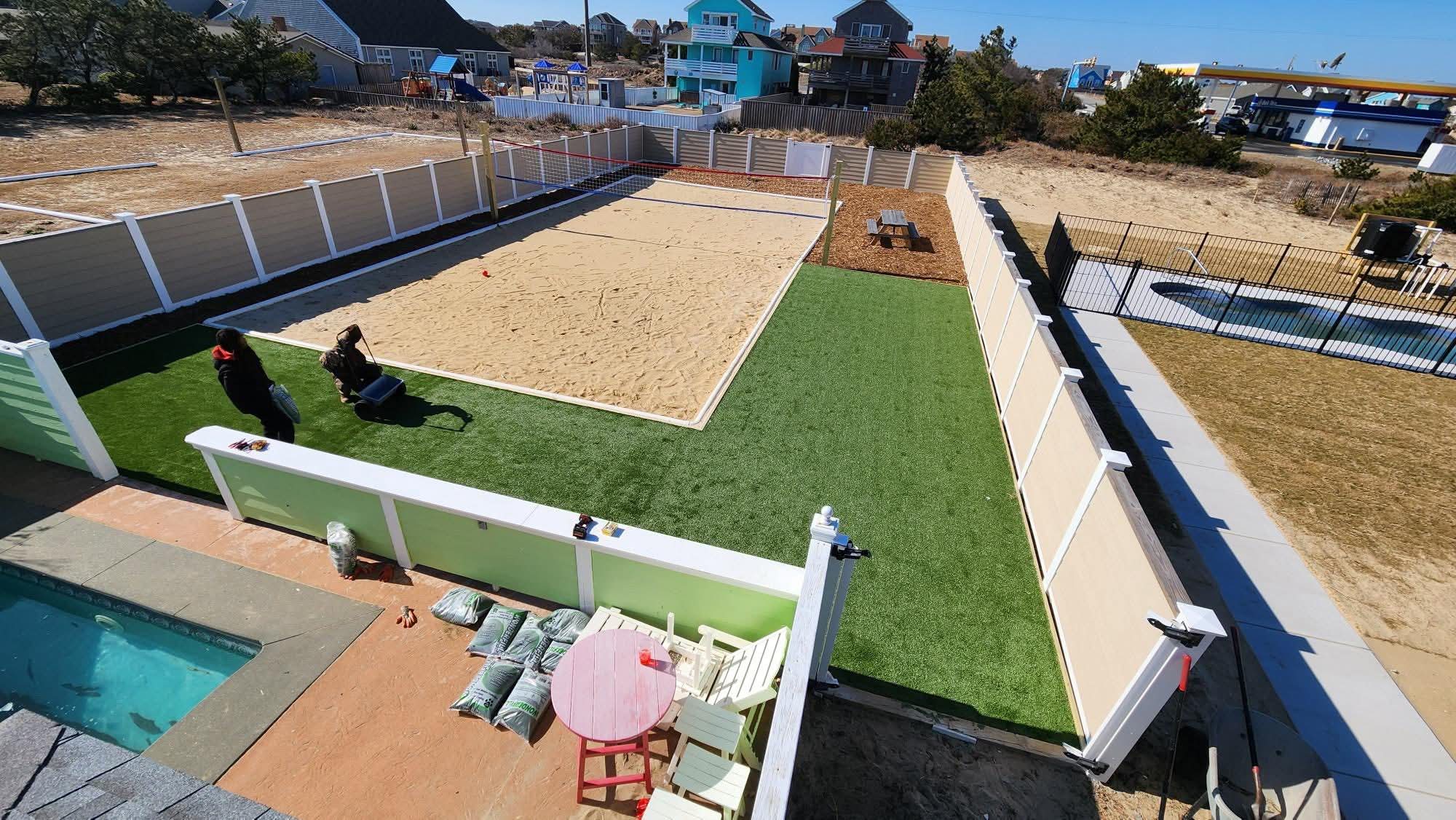 CJ's Paradise is a semi-oceanfront home with a private heated pool, cabana, hot tub and volleyball court. 8 master bedrooms, so there is plenty of room for everyone to enjoy an awesome OBX vacation. A recreation room on the lower level offers a movie room and foosball table for lots of family fun. The sand volleyball court in the backyard is included in your cottage stay. Beautiful beaches are just a short walk away.